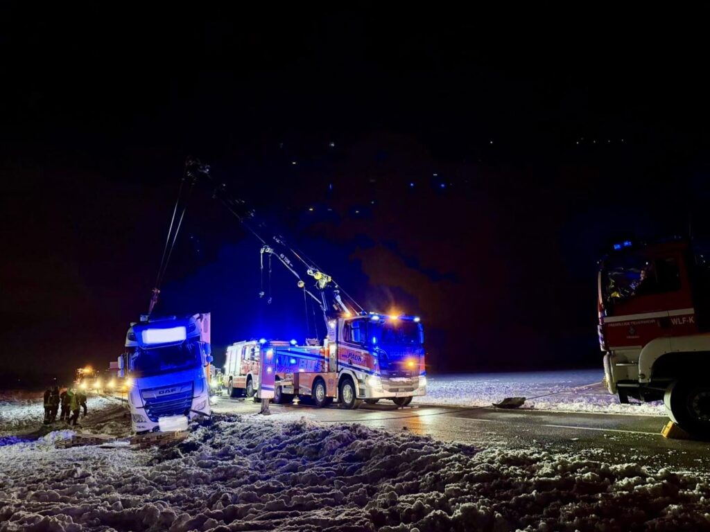 Nach Beendigung der Bergungsarbeiten beim ersten LKW rückten wir gemeinsam mit den Spezialisten des Bergeunternehmens zum zweiten LKW.